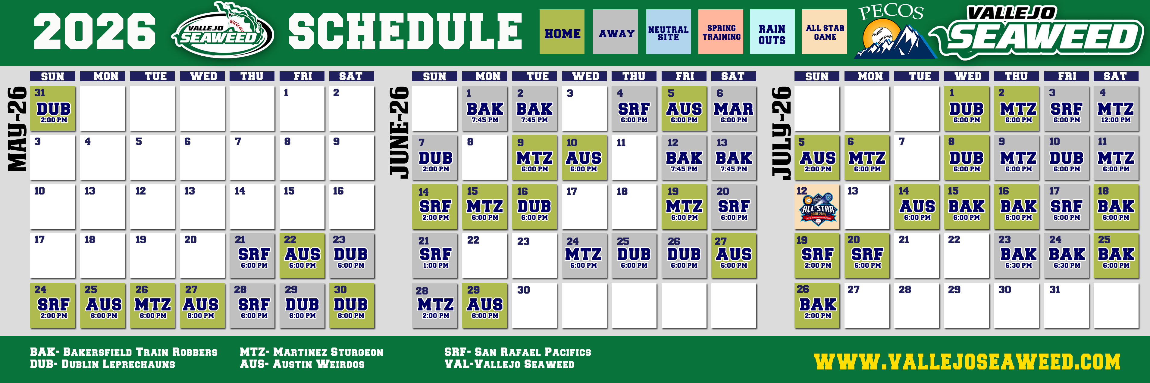 Vallejo Seaweed games are streamed over the Internet via Meridix. We offer sponsorship ads during these broadcasts and entire season sponsors.